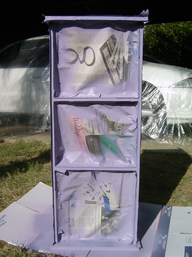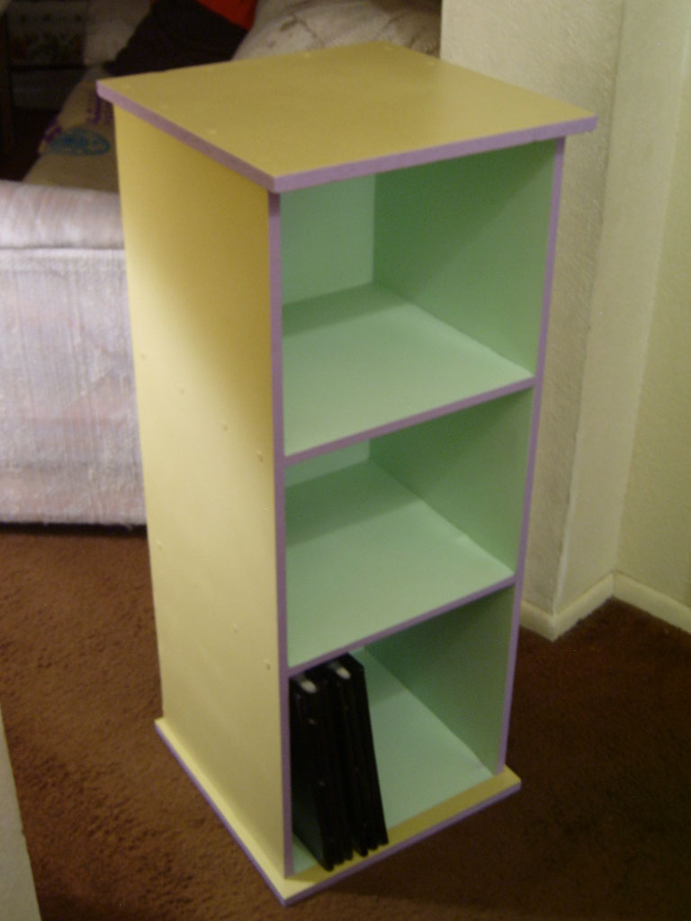 I am the first to admit that my woodworking skills are very, very poor. I built a deep bookshelf as a gift for a friend out of 1/2″ MDF. I wanted it to be deep enough to hold a 12″x12″ scrapbook album – most of the cheap bookshelves at Target/Wal-Mart/IKEA were not deep enough to accommodate a scrapbook album. I’m still not sure why I went with pastel colors – I would do this project much differently today.
