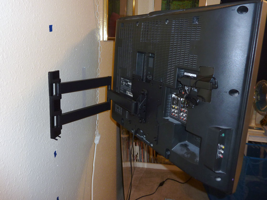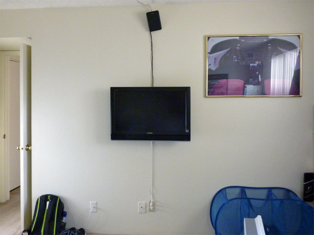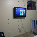 I found a SONY 30″ LCD TV by the trash bin that worked fine. I ordered a ROKU Stick and a Monoprice wall mount. With a very small investment, I now have a “Smart” TV that can do YouTube, Netflix, and other streaming services. I did not have a stud finder but I was able to use a neodymium magnet from an old hard drive to find the wall studs (marked with blue tape). The black rectangle hanging above the TV is a powered indoor HDTV antenna (yes, I know it looks bad).