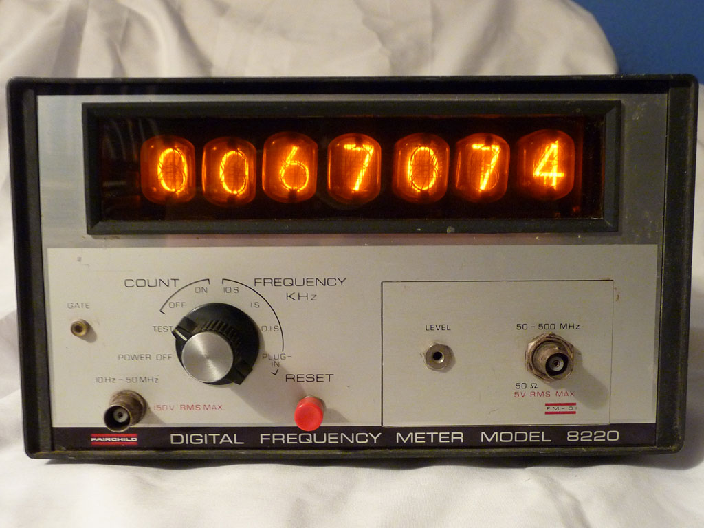A friend came to me with this vintage Systron Donner Model 8220 Frequency Meter that he purchased secondhand. It had an awesome 7-digit Nixie tube display, but we could not find a power cord to fit the original socket. Using my trusty Dremel tool, I enlarged the opening on the back panel and replaced it with a 3-prong socket from an old computer power supply. This way, it could accept a standard IEC cord from any personal computer. The resulting display was worth the effort!