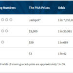 In Powerball, there is a $1 million prize and a $50,000 prize, then the next tier drops to just $100. Mega Millions has a similar structure, with a grand prize followed by a $1 million prize, a $10,000 prize, and then prizes of $500 down to $2. It’s the same for the state-run games. The second largest prizes are: $2,000 in The Pick, $500 in Fantasy 5, and $250 in Pick 3.