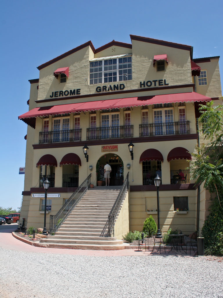 Our next stop was the highest building in town: the Jerome Grand Hotel. This famous old building was built in 1926 and opened in 1927 as the United Verde Hospital. Around 1929, the population of Jerome was about 15,000 people, and you can imagine that besides the brothels and saloons, the hospital was one of the busiest places in town. Mining accidents were very common back before before OSHA or any other safety standards were in place. The official website of the Jerome Grand Hotel describes it best: