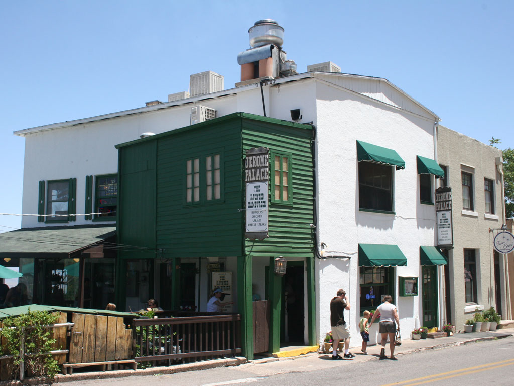 Leaving the park, we crawled into town along AZ 89, which winds its way through the narrow streets up Mingus Mountain. We passed by art galleries, a modern-looking firehouse, and parked in a crowded row of cars along the main street. With a rumble in my stomach, we set out in search of the Jerome Palace, home of the Haunted Hamburger. Getting there required climbing a flight of stairs that never seemed to end, but we made it to the top with minimal huffing and puffing. Blame it on the elevation, as I always say.