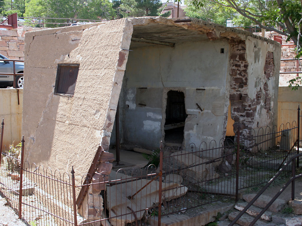 Dad and I located the famous Sliding Jail, which today is little more than a cement box in very bad shape. Thanks to mining operations below ground and dynamite blasts above ground, the ground in Jerome was constantly shaking and shifting for many years. In fact, the jail slid down the mountain during a landslide and now rests over 200 feet away from its original location. The Sliding Jail was not as popular as I expected; we were the only ones there. While the jail is no longer in danger of falling off the mountain, I have to wonder how many other buildings in town have been shifted around.