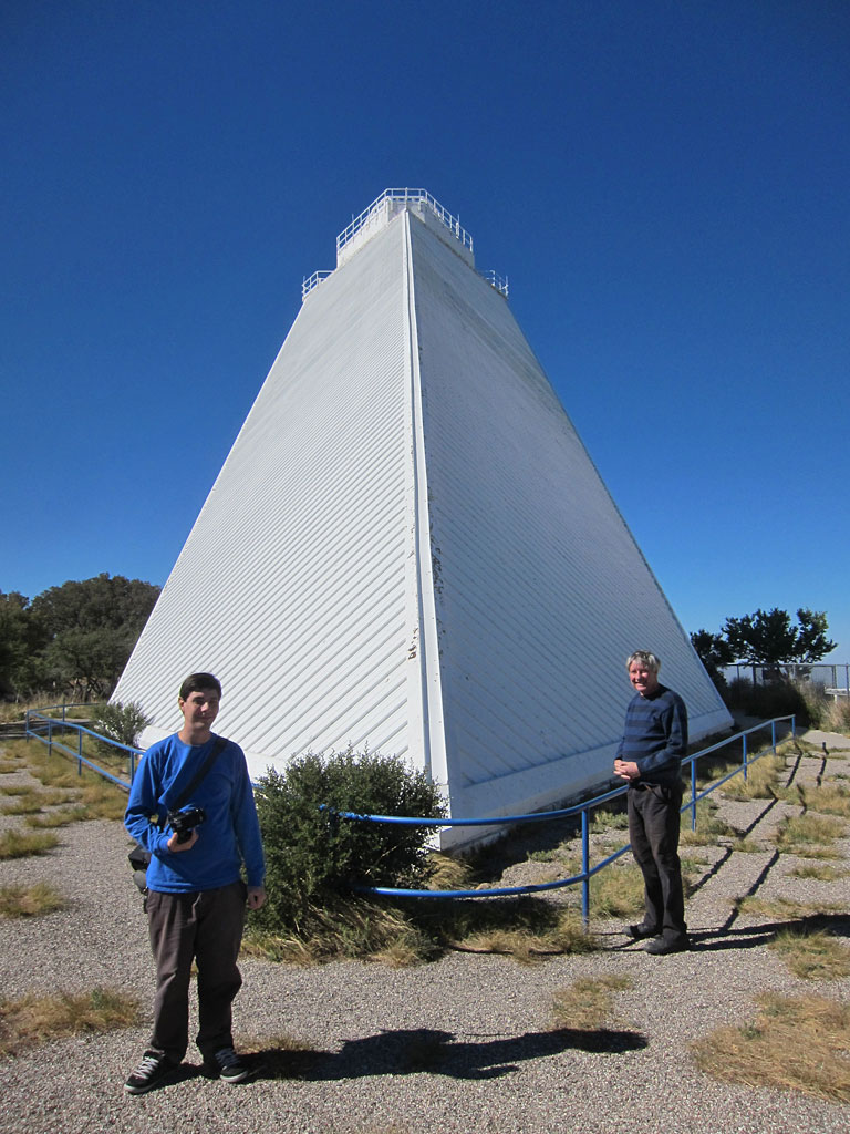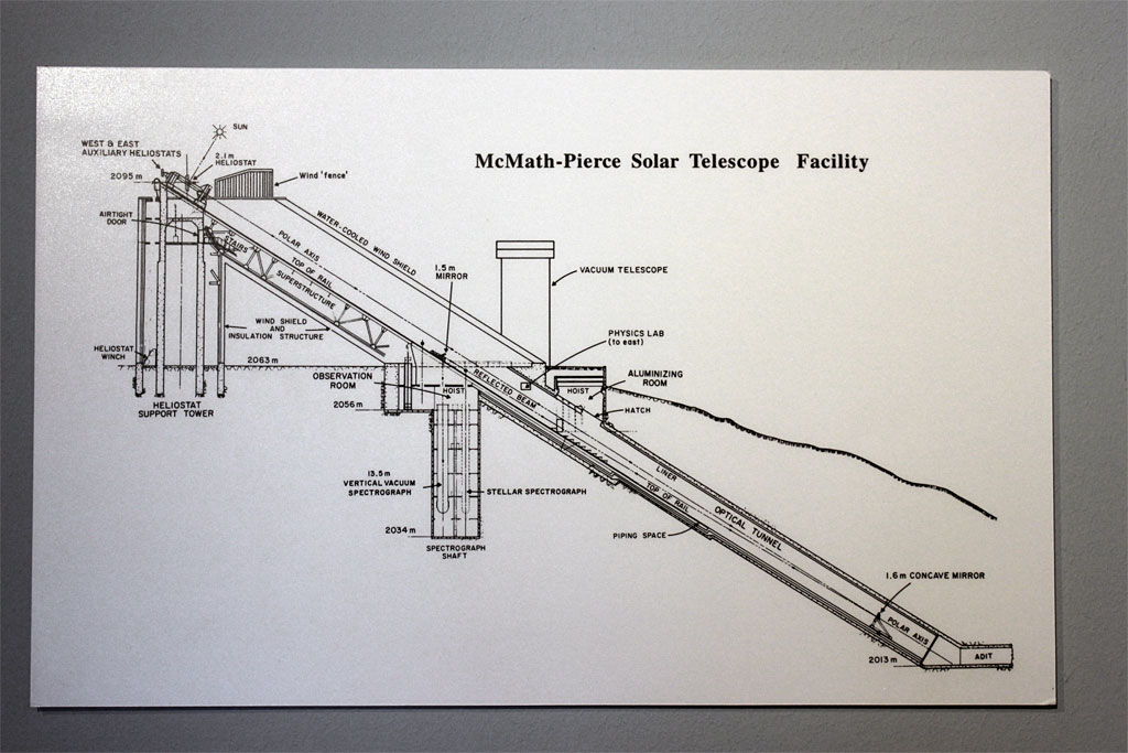 George began by giving us a tour of the different buildings around the facility. We saw the McMath-Pierce Solar Telescope, which is the largest solar telescope in the world. Part of the telescope is above ground, while the observing room and control room are underground, inside of the mountain. It looks like the hideout for a supervillain in a James Bond movie – especially the control room with its red lighting.
