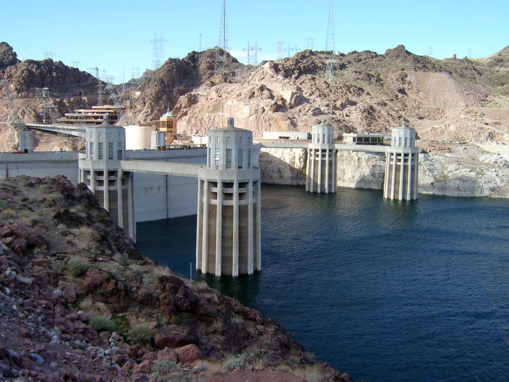 A security checkpoint let us know we were close to Hoover Dam. The guard on duty lost his hat to the wind and began to chase it, but only after waving us through. The traffic slowed as we approached the Dam and we took a few photos of the lake behind it. It was much lower than it was on my last visit in 2004. This time we had decided to take the tour, because I had printed out some coupons for it online.