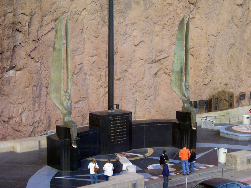 After that we headed back up to the top and got some pictures from the Observation Deck. We checked out the winged statues and the various plaques and memorials near the Dam. The Art Deco styling of the Dam is very classy and way past cool. By this time we were getting hungry so we headed for the car and got moving again. Passing quickly through Henderson, we soon arrived in Las Vegas and had some lunch.