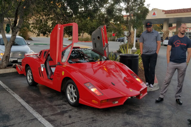 For years, I have followed the Car Bros channel on YouTube. They organized a meetup for fans at the Jack in the Box in Del Rey Oaks, so I went to check it out. I got to meet Coyne, Garrett and John from Car Bros and their amazing “Fierri” – a horrendous replica of a Ferrari Enzo based on a Pontiac Fiero. They made a documentary about how they got the car into The Quail Motorsports Gathering, which is on their YouTube channel. I donated to the Kickstarter campaign to get this car to Monterey, so it was neat to see the car in person.