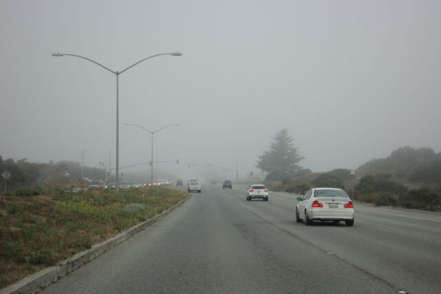 Friday was a busy day with lots of stops to make. As in previous years, I had to drive to The Lodge at Pebble Beach in advance to pick up my badge for the show. The drive from Salinas to Monterey goes through lots of farmland, which was covered with a thick layer of marine fog early in the morning. It was surreal to drive through the streets with such low visibility.