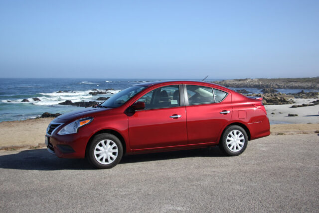 At the Hertz counter, I received the keys to my rental car: a Nissan Versa SV compact sedan. The car was painted a deep red that Nissan calls “Scarlet Ember.” The car was a total econobox, powered by a 1.6L engine producing 109 horsepower and coupled to a miserable CVT transmission. However, it was cheap to rent and got great mileage.