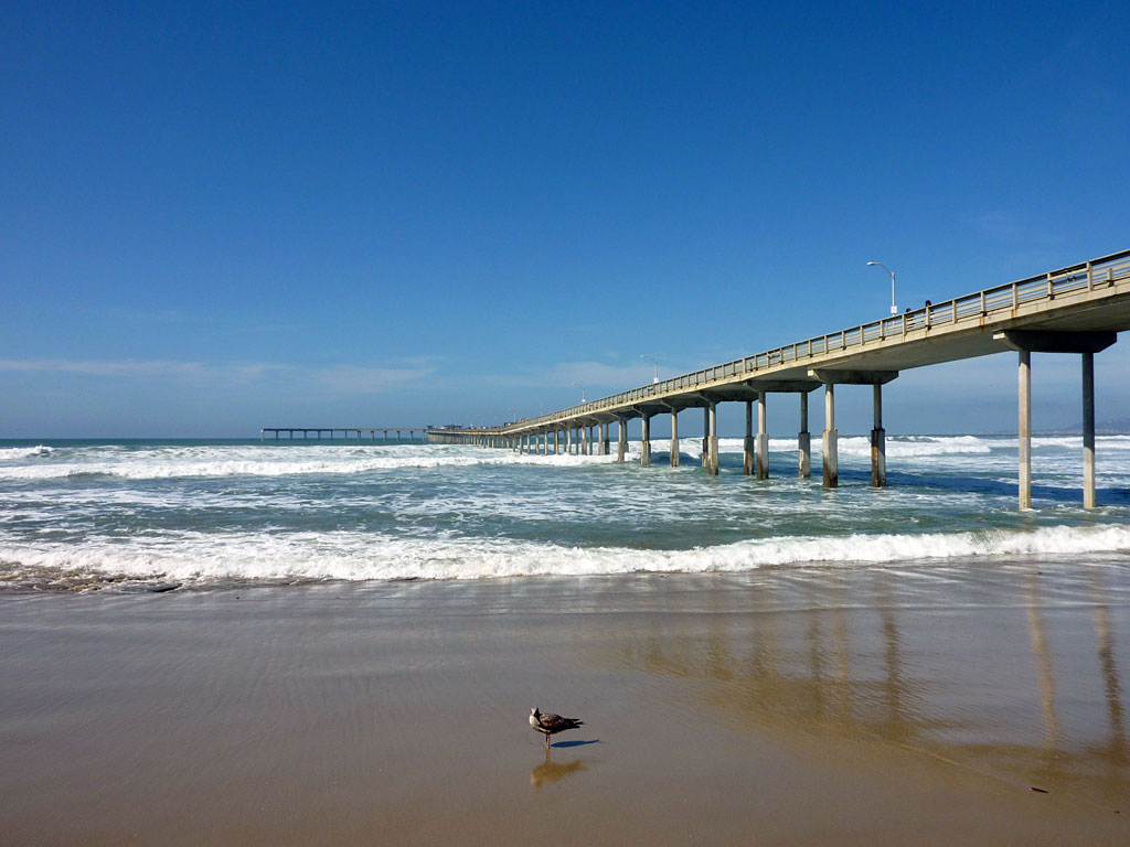 The Ocean Beach pier is the longest concrete pier on the West Coast at 1,971 feet (600 m). It is used for fishing and sightseeing. We visited the pier and took some pictures, then walked along the beach enjoying the atmosphere. The water was quite cold in February but we both removed our shoes and stuck our toes in the sand, which we enjoyed.