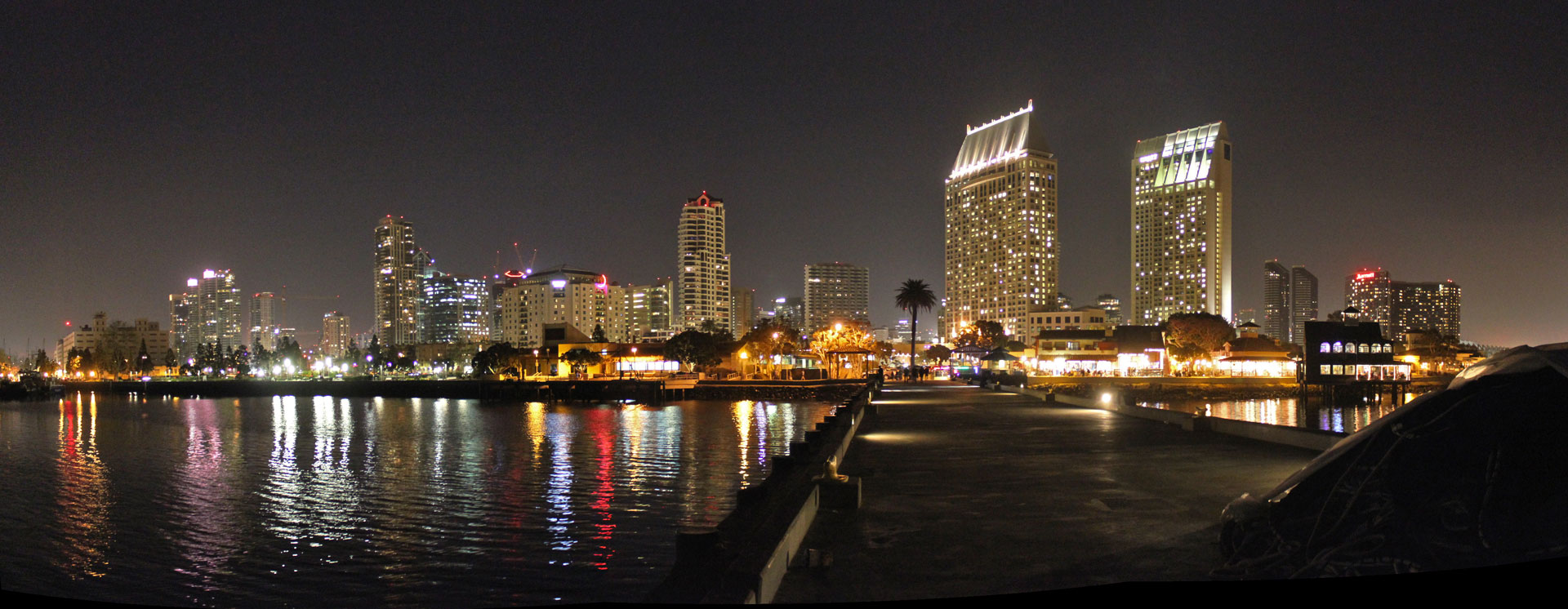 Our last stop of the day was Seaport Village. This is a shopping complex with restaurants and gift shops, and a place that Krystina remembered going with her family when she was younger. We were still pretty full from lunch, but we had some ice cream for dinner. Krystina and I set up our tripods on the Market Street Pier and spent about 30 minutes doing some night photography of the city skyline.